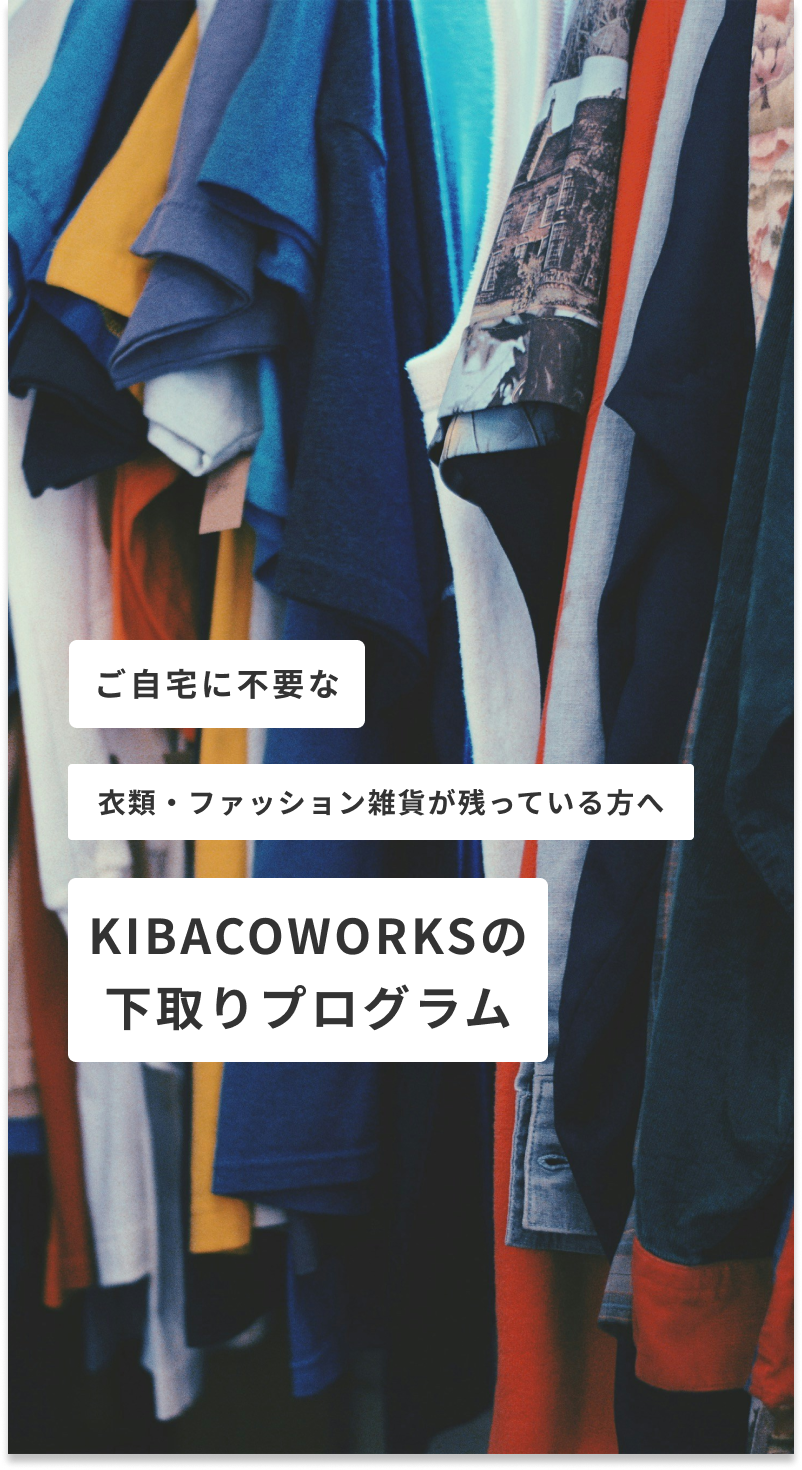 ファッション雑貨・衣類だけでなく、家電、インテリア雑貨なども買取可能!KIBACOWORK商品ご購入後に下取りプログラムにお申込みください。